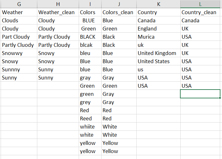 Now that we have completed our look up tables, we can proceed to run the appropriate macro. For this particular macro, you need to complete each lookup table. If there are no changes, just “fill right” or copy/paste the orginal values into the clean column.