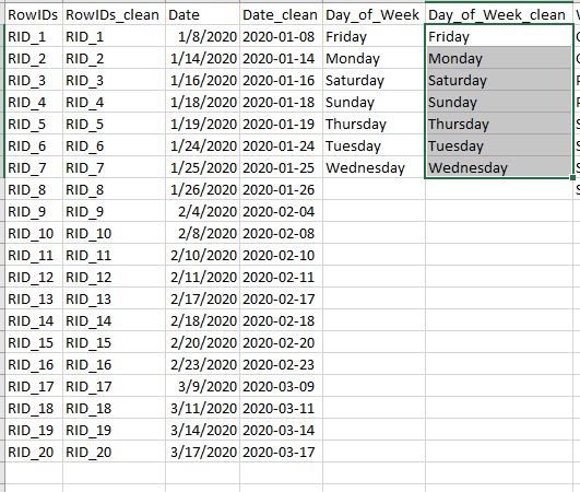 One thing to note concerns date formats. Notice in the first image how the original date is composed a certain way and the “_clean” column shows a different style. If this is not made as a text, the style will most likely revert back. This can be frustrating, but just requires changing the column number format. There are more complicated methods to fix this but that is out of scope for this post.